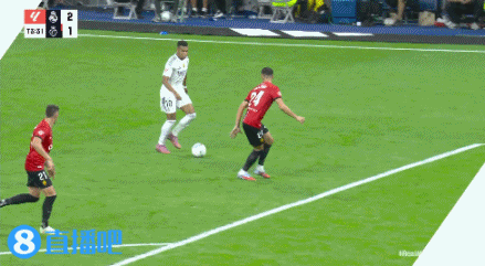 第38分钟,巴尔韦德后场断球,维尼修斯得球一条龙推进假动作虚晃后低射远角入网,皇马2分钟2球反超比分↓